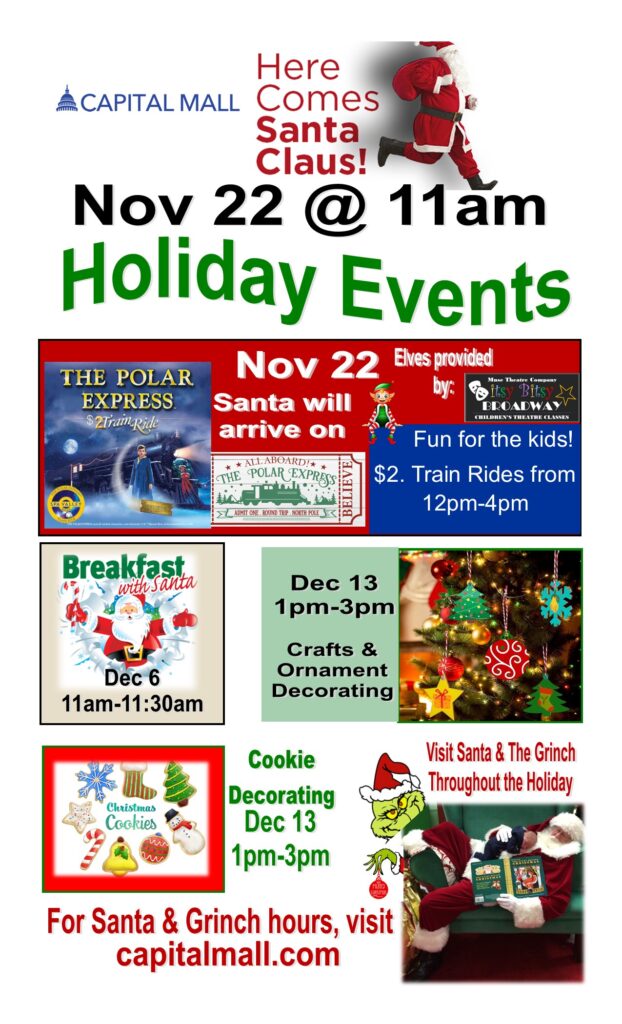 Follow us on Facebook (Capital Mall) for event and mall information