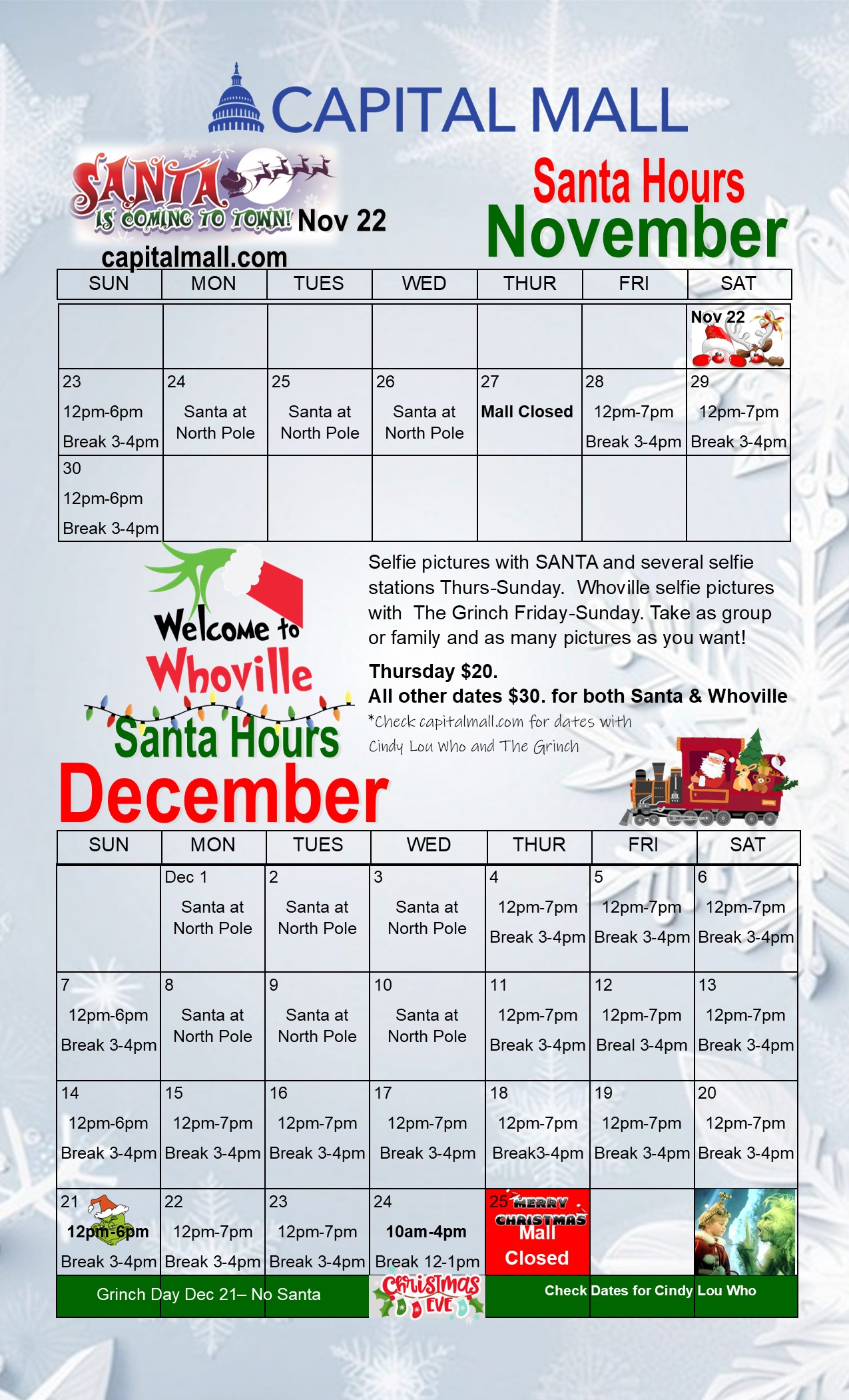 Follow us on Facebook (Capital Mall) for event and mall information